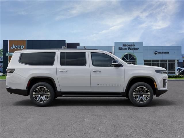 White 2026 Jeep Grand Wagoneer L 4WD 8-Speed Automatic 3.0L I6 118 MPH Maximum Speed Calibration, 3 Panel Sunroof, 3.55 Rear Axle Ratio, 3rd row seats: bench, 4-Wheel Disc Brakes, 9 Speakers, ABS brakes, Air Conditioning, Alloy wheels, AM/FM radio: SiriusXM with 360L, Anti-whiplash front head restraints, Apple CarPlay/Android Auto, Audio memory, Auto Adjust in Reverse Exterior Mirrors, Auto High-beam Headlights, Auto Power-Folding Mirrors, Auto-dimming door mirrors, Auto-Dimming Exterior Driver Mirror, Auto-dimming Rear-View mirror, Auto-leveling suspension, Auto-Power-Folding Exterior Mirrors, Automatic temperature control, Black Exterior Accents, Brake assist, Bumpers: body-color, Compass, Delay-off headlights, Driver door bin, Driver vanity mirror, Driver's Seat Mounted Armrest, Dual front impact airbags, Dual front side impact airbags, Electronic Stability Control, Emergency communication system: Jeep Connect, Exterior Mirrors Approach Lamps, Exterior Mirrors with Memory, Exterior Mirrors with Supplemental Signals, Exterior Parking Camera Rear, Four wheel independent suspension, Front anti-roll bar, Front Bucket Seats, Front Center Armrest w/Storage, Front dual zone A/C, Front fog lights, Front reading lights, Fully automatic headlights, Garage door transmitter, Heated door mirrors, Heated Exterior Mirrors, Heated front seats, Heated steering wheel, Illuminated entry, Interior Rear Facing Camera, Knee airbag, Low tire pressure warning, Luxury Front and Rear Floor Mats, Memory seat, Navigation System, Normal Duty Suspension, Occupant sensing airbag, Outside temperature display, Overhead airbag, Overhead console, P and P Park and Unpark Assist with Stop System, Panic alarm, Passenger door bin, Passenger seat mounted armrest, Passenger vanity mirror, Power door mirrors, Power driver seat, Power Liftgate, Power passenger seat, Power steering, Power windows, Premium Group I, Quick Order Package 29E Grand Wagoneer, Radio data system, Radio: Uconnect 5 Nav with 12 Display, Rain sensing wipers, Rear air conditioning, Rear anti-roll bar, Rear reading lights, Rear seat center armrest, Rear window defroster, Rear window wiper, Reclining 3rd row seat, Remote keyless entry, Reversible Carpet/Vinyl Cargo Mat, Security system, Side Distance Warning, Speed control, Speed-sensing steering, Speed-Sensitive Wipers, Split folding rear seat, Steering wheel memory, Steering wheel mounted audio controls, Surround View Camera System, Tachometer, Telescoping steering wheel, Tilt steering wheel, Traction control, Trip computer, Turn signal indicator mirrors, Variably intermittent wipers, Ventilated front seats, Voltmeter, Wheels: 20 x 9.0 Machine Face Painted Aluminum.