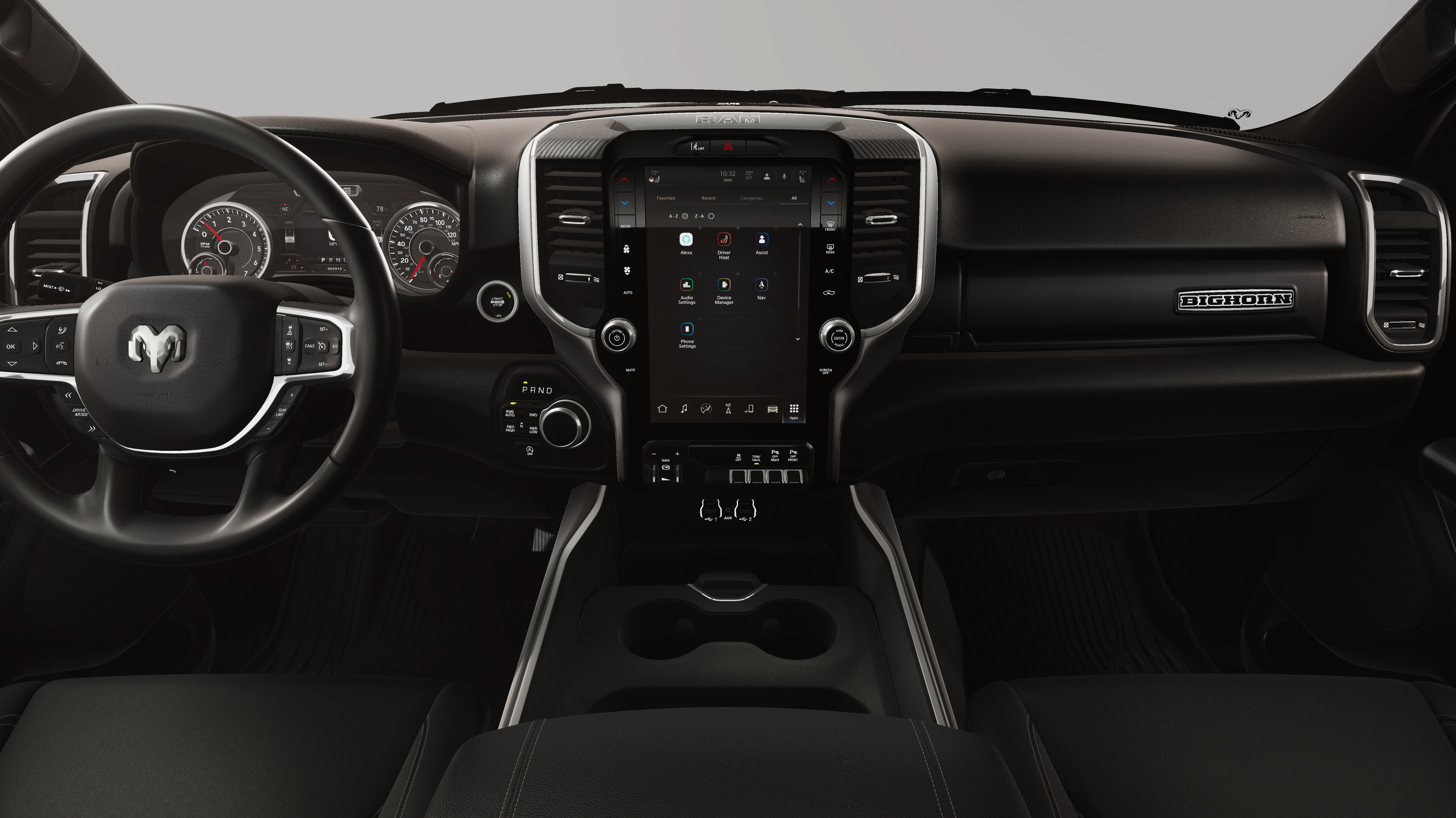 Silver 2026 Ram 1500 Big Horn/Lone Star 4WD 8-Speed Automatic HEMI 5.7L V8 Multi Displacement VVT eTorque 115V Auxiliary Power Outlet, 115V Auxiliary Rear Power Outlet, 12 Touchscreen Display, 2nd Row in Floor Storage Bins, 3 Rear Seat Head Restraints, 4 Way Front Headrests, 4-Wheel Disc Brakes, 400W Inverter, 48V Belt Starter Generator, 4G LTE Wi-Fi Hot Spot, 6 Speakers, 9 Amplified Speakers with Subwoofer, ABS brakes, Air Conditioning, Air Conditioning ATC with Dual Zone Control, Alloy wheels, AM/FM radio, Apple CarPlay, Apple CarPlay/Android Auto, Auto High-beam Headlights, Auto Power-Folding Mirrors, Auto-Dimming Exterior Driver Mirror, Auto-Dimming Rear-View Mirror, Bed Utility Group, Big Horn Level 2 Equipment Group, Black Exterior Mirrors, Black Premium Power Mirrors, Body Color Fender Flares, Brake assist, Bucket Seats, Bumpers: chrome, Center Console Parts Module, Cloth Bucket Seats, Cluster 7.0 TFT Color Display, Compass, Configurable Drive Mode, Connected Travel and Traffic Services, Connectivity - US/Canada, Convex Wide-Angle Exterior Mirror Insert, Delay-off headlights, Deluxe Cloth Bucket Seats, Disassociated Touchscreen Display, Driver door bin, Dual front impact airbags, Dual front side impact airbags, Electronic Stability Control, Exterior 115V AC Outlet, Exterior Mirrors Courtesy Lamps, Exterior Mirrors with Heating Element, Exterior Mirrors with Supplemental Signals, Front anti-roll bar, Front Bucket Seats, Front Center Armrest w/Storage, Front fog lights, Front reading lights, Front Seat Back Map Pockets, Front wheel independent suspension, Full Length Floor Console, Fully automatic headlights, Global Telematics Box Module, Glove Box Lamp, Google Android Auto, GPS Antenna Input, GPS Navigation, HD Radio, Heated door mirrors, Heated Front Seats, Heated Steering Wheel, Illuminated entry, Integrated Center Stack Radio, Integrated Voice Command with Bluetooth®, Leather Wrapped Steering Wheel, LED Dome Lamp with on/Off Switch, LED Footwell Lighting, Low tire pressure warning, Manual Adjust 4-Way Driver Seat, Manual Adjust 4-Way Front Passenger Seat, Manual Folding Exterior Mirrors, Media Hub with 2 Charge Only USBs, MOPAR 4 Adjustable Cargo Tie-Down Hooks, MOPAR Front and Rear Rubber Floor Mats, MOPAR Spray in Bedliner, Occupant sensing airbag, Outside temperature display, Overhead airbag, Overhead console, Overhead LED Lamps, Panic alarm, ParkView Rear Back-Up Camera, Passenger door bin, Passenger vanity mirror, Pick-Up Box Lighting, Power 2-Way Driver Lumbar Adjust, Power Adjust 8-Way Driver Seat, Power Adjustable Pedals, Power door mirrors, Power steering, Power windows, Premium Overhead Console, Quick Order Package 27Z Big Horn, Radio data system, Radio: Uconnect 5 Navigation with 12.0 Display, Radio: Uconnect 5 W with 8.4 Display, RAM Grille Badge - Chrome, Rear 60/40 Folding Seat, Rear anti-roll bar, Rear Center Armrest, Rear Power Sliding Window, Rear step bumper, Rear Wheelhouse Liners, Rear Window Defroster, Remote keyless entry, Remote Tailgate Release, Security Alarm, SiriusXM Radio Service, SiriusXM with 360L, Speed control, Steering Wheel Mounted Audio Controls, Sun Visors with Illuminated Vanity Mirrors, Supplier Part Tracking (J-1), Tachometer, Telescoping steering wheel, Tilt steering wheel, Traction control, Trailer Brake Control, Trip computer, Universal Garage Door Opener, USB Host Flip, Variably intermittent wipers, Voltmeter, Wheel to Wheel Side Steps, Wheels: 20 x 9 Aluminum Chrome Clad.